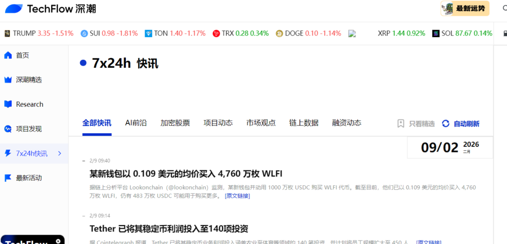 然后在这里面选你觉得有意思的推送和新闻,比如我看到这个,某鲸鱼将417755枚trump转入